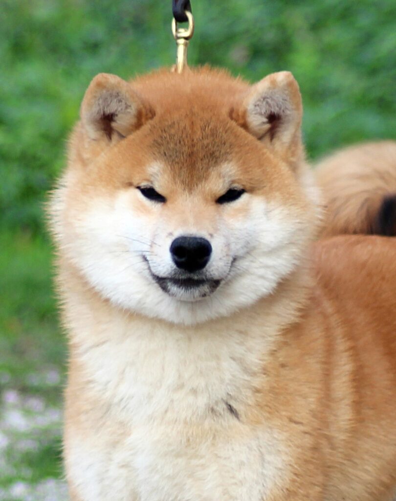 Se da questi ultimi si è avuto il pelo (che era rosso fuoco anche Mino) altre caratteristiche erano già ben fissate in questi progenitori dello Shiba moderno: al San’in si deve lo stop, le orecchie e gli occhi invece arrivano dal patrimonio cromosomico del Mino. L’abilità degli allevatori giapponesi fu infatti quella di saper prendere il meglio ora qui ora là. Vedi come dal Mino è stato tramandato il taglio degli occhi e il loro colore bruno scuro, ma non la coda pendente; così dai Shinshu è stato selezionato il tipo di pelo eliminando dallo stesso una tendenza a portare nel colore la maschera nera ed eliminando un altro difetto tipico dei discendenti di Mastsumaro, uno dei più celebri campioni di quella linea di sangue, che trasmetteva degli occhi leggermente troppo rotondi. Da allora sono rimasti colori differenti pur se all’interno della stessa razza e senza che vi siano limitazioni di accoppiamento. Così come nell’Akita la tonalità preferita è il rosso, possibilmente acceso. Gli Shiba di questo colore sono detti Aka-lnu. C’è poi il sesamo, detto Aka-Goma, che consiste in una particolare carbonatura del pelo che partendo chiaro alla radice va via via scurendosi fino a essere nero sulla punta. Altro colore è il nero-rosso che deve presentare macchie bianche sui piedi, sul torace e sulla coda, mentre il nero monocolore fa sì che il cane non sia considerato uno vero Shiba. Simile al sesamo, che è una mescolanza di rosso, bianco e nero dove il rosso domina, c’è il nero-sesamo (detto Kurogoma) in cui a dominare è invece il nero. Il meno amato, il meno apprezzato a livello espositivo, ma comunque ammesso fra i colori possibili, è il bianco.